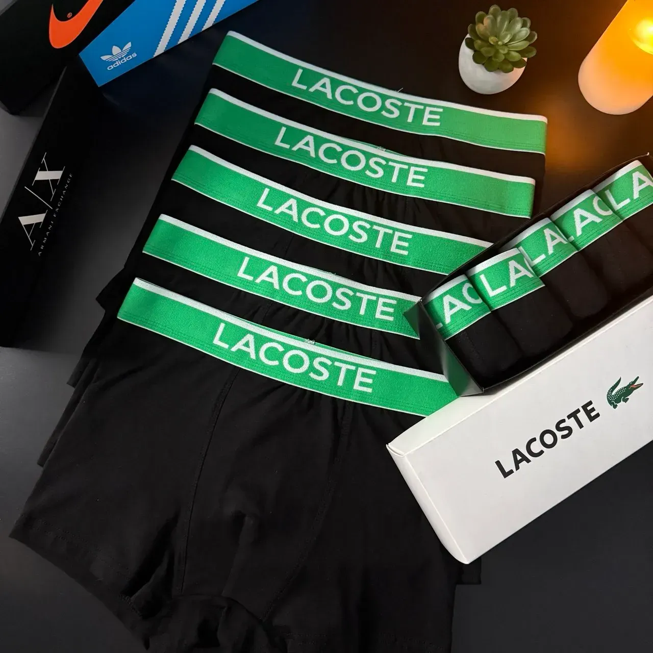 Чоловічі труси Lacoste (Лакост) Набір з 5 штук | Набір Чоловічої нижньої білизни – (бавовняні)